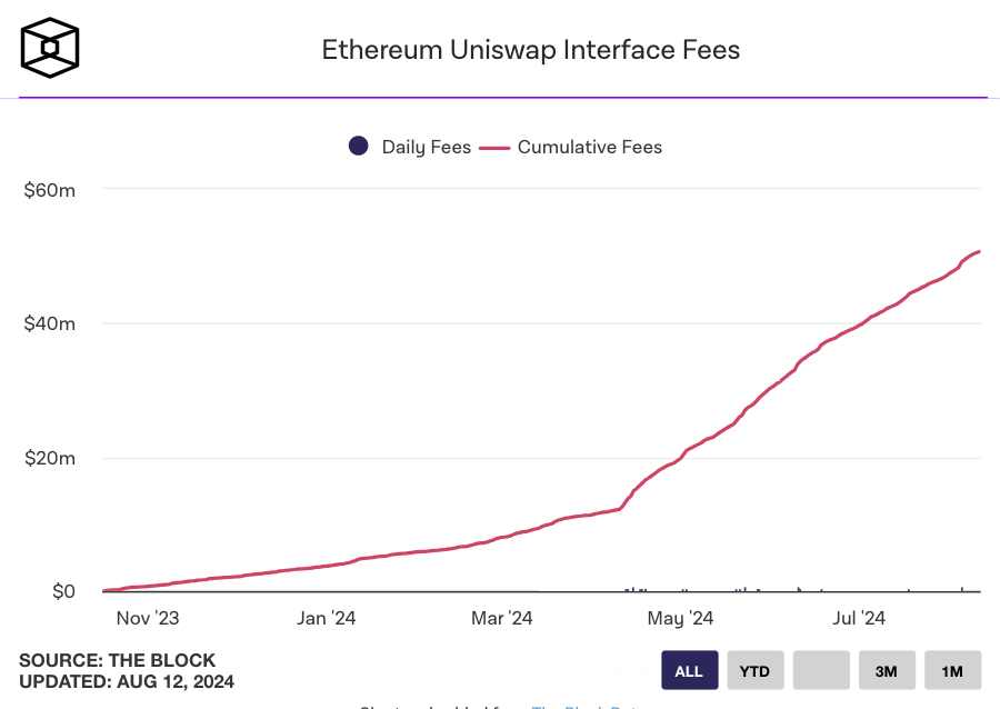 Uniswap Labs, công ty phát triển đứng sau giao thức Uniswap, đã chứng kiến tổng phí trả trước tích luỹ vượt mốc 50 triệu đô la.