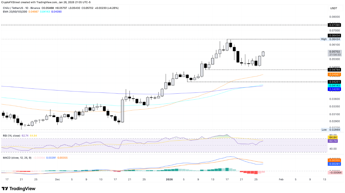 Ở chiều ngược lại, vùng tâm lý 0,050 USD vẫn đóng vai trò là ngưỡng hỗ trợ quan trọng, giúp củng cố nền giá cho Chiliz trong ngắn hạn.