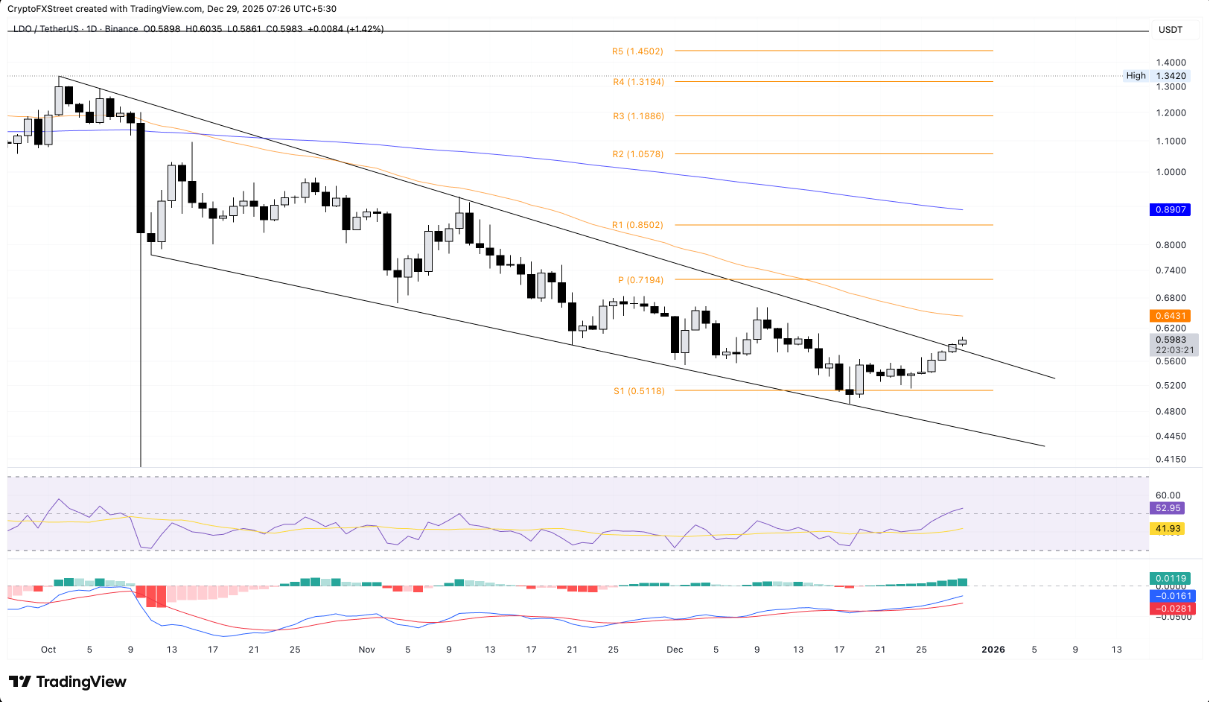 Ngược lại, nếu LDO rơi xuống dưới mức thấp của Chủ Nhật tại $0,5743, đà bứt phá mô hình cái nêm có thể bị vô hiệu, tiềm ẩn rủi ro điều chỉnh về S1 Pivot Point tại $0,5118.
