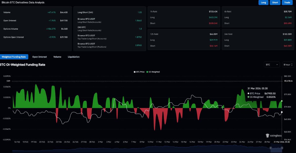 Bitcoin đang dần thu hút trở lại sự chú ý của nhà đầu tư nhỏ lẻ khi dòng tiền chảy mạnh vào các sản phẩm phái sinh nhằm tận dụng đòn bẩy, trong bối cảnh kỳ vọng căng thẳng Trung Đông hạ nhiệt. Dữ liệu từ CoinGlass cho thấy hợp đồng mở của hợp đồng tương lai Bitcoin tăng gần 2% trong 24 giờ qua, lên mức 49,70 tỷ USD, phản ánh dòng vốn mới đang tích cực tham gia và tích lũy vị thế.