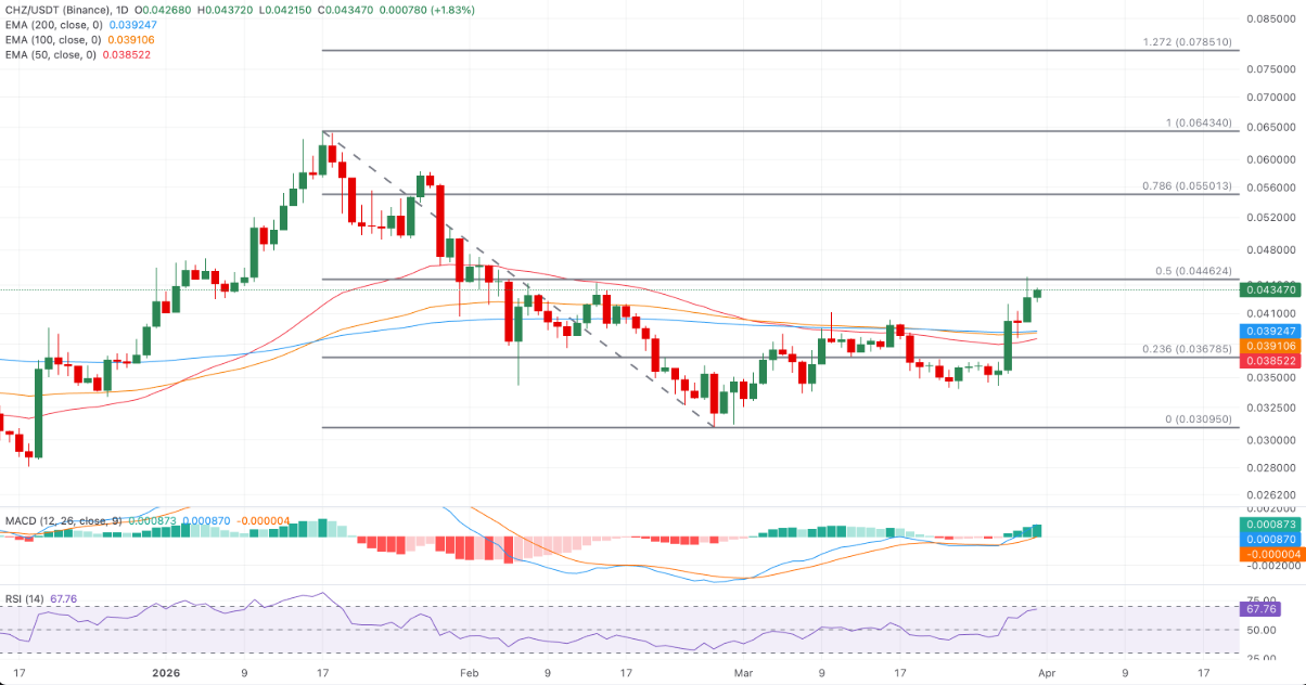 Biểu đồ CHZ/USDT hàng ngày | Nguồn: TradingView