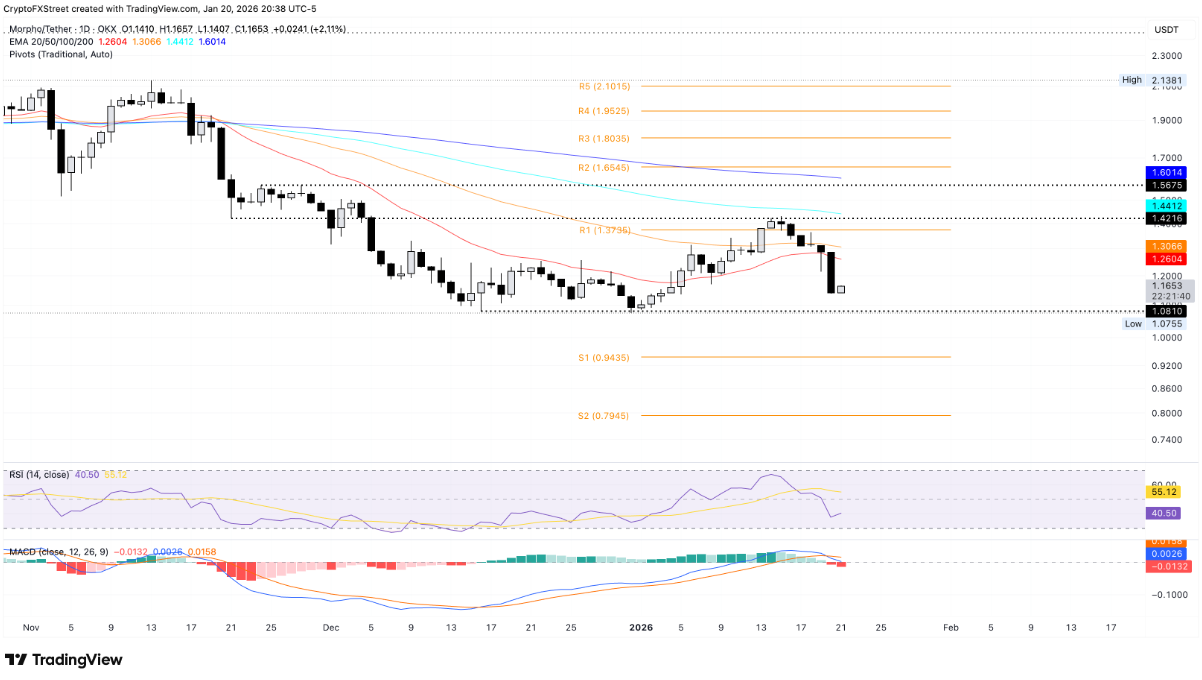 Trong trường hợp MORPHO phục hồi, đường EMA 20 ngày tại 1,26 USD nhiều khả năng sẽ tạo thành kháng cự, hạn chế đà tăng ngắn hạn.
