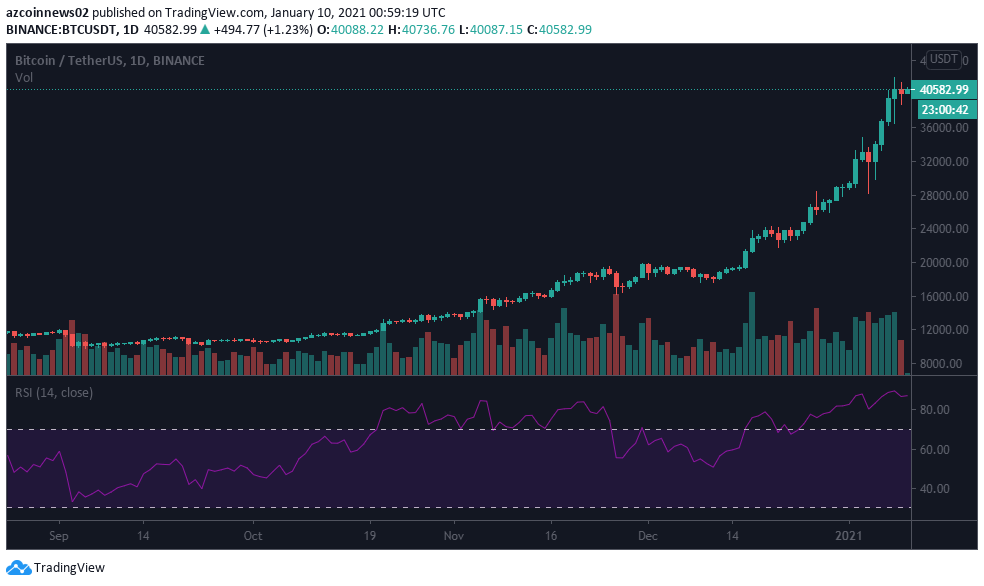 Theo sau mức giá cao nhất mọi thời đại mới của Bitcoin là $ 41,940 vào ngày 8 tháng 1, tiền điện tử hàng đầu đã bước vào giai đoạn hợp nhất ngắn ngủi khi những con bò đực cố gắng đẩy giá lên cao hơn sau khi xác nhận mức $ 40,000 là hỗ trợ.