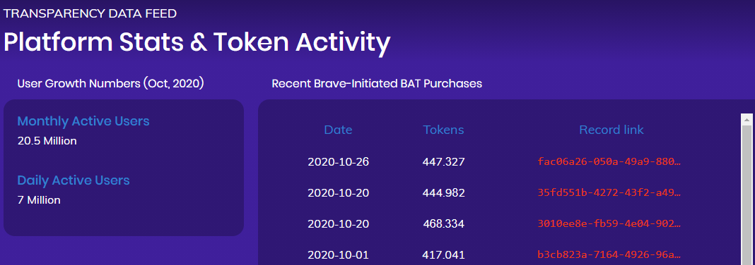 Số lượng người sáng tạo nội dung đã được xác minh trên nền tảng Brave đã tăng tương đối từ 300.000 năm ngoái lên gần 1 triệu người hiện nay. Brave là một trình duyệt tập trung vào quyền riêng tư, thưởng cho những người tham gia xem quảng cáo bằng cách sử dụng Basic Attention Token (BAT). Nhiều người dùng chọn phân bổ một số hoặc tất cả các token họ kiếm được cho người tạo nội dung trên web. Những người tham gia này đã trả 26 triệu BAT cho những người sáng tạo nội dung kể từ khi bắt đầu dự án.