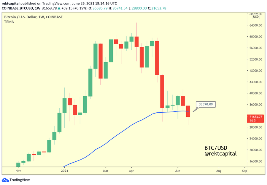 Bitcoin dưới đường WEMA 50 | Nguồn: Rekt Capital