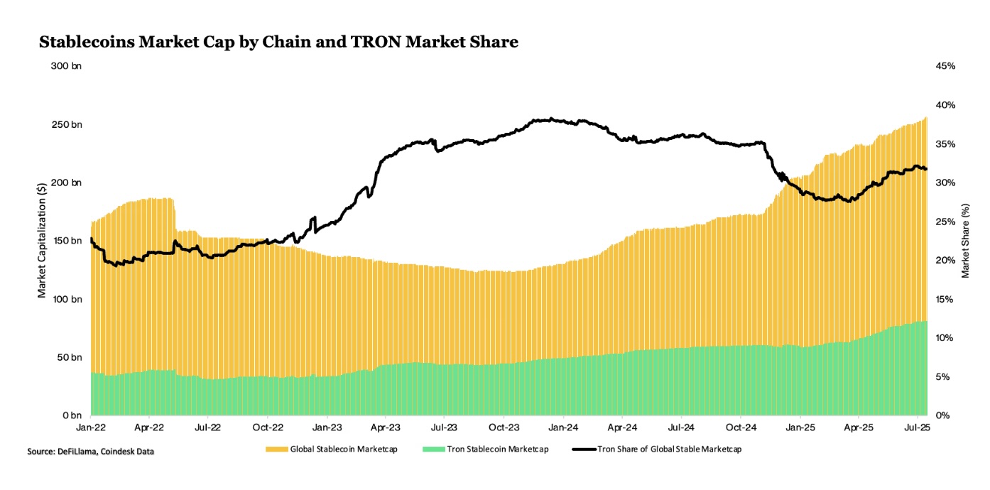 CoinDesk Data vừa công bố báo cáo phân tích toàn diện về TRON, ghi nhận nửa đầu năm 2025 mạng lưới này tiếp tục dẫn đầu về thanh toán stablecoin, tăng trưởng người dùng nhanh và mở rộng ảnh hưởng tới tài chính toàn cầu.