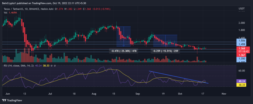 XTZ vẫn đang giao dịch gần với mức hỗ trợ dài hạn thấp hơn tại 1,3 đô la. Nhưng với những phát triển đang diễn ra trong hệ sinh thái, các nhà đầu tư hy vọng về breakout.