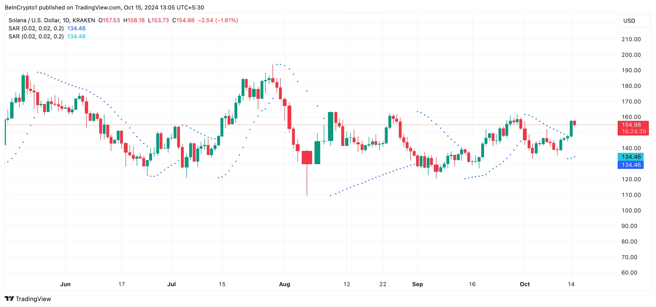 Chỉ báo SAR của Solana | Nguồn: TradingView