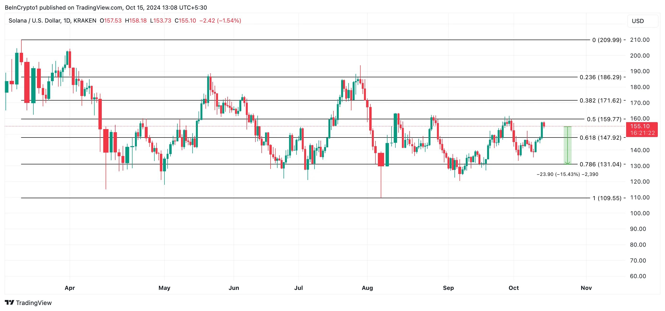 Solana hiện đang giao dịch ở mức 155 đô la, thấp hơn mức kháng cự 159,77 đô la. Nếu đà tăng tiếp tục, giá có thể vượt qua mức này và hướng tới 186,29 đô la, mức cao nhất từng thấy vào tháng 7.