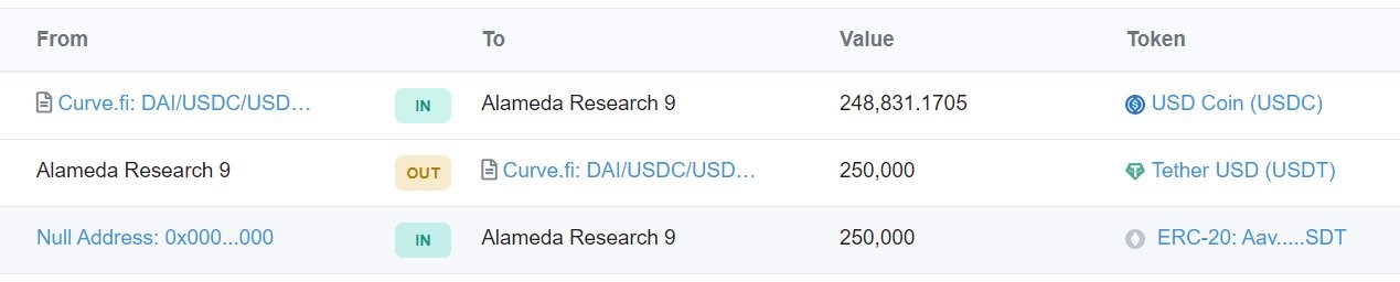 Trong một bước ngoặt khác, phân tích on-chain cho thấy chi nhánh giao dịch của FTX, Alameda, đã vay 250.000 USDT từ Aave vào đầu ngày 10/11.