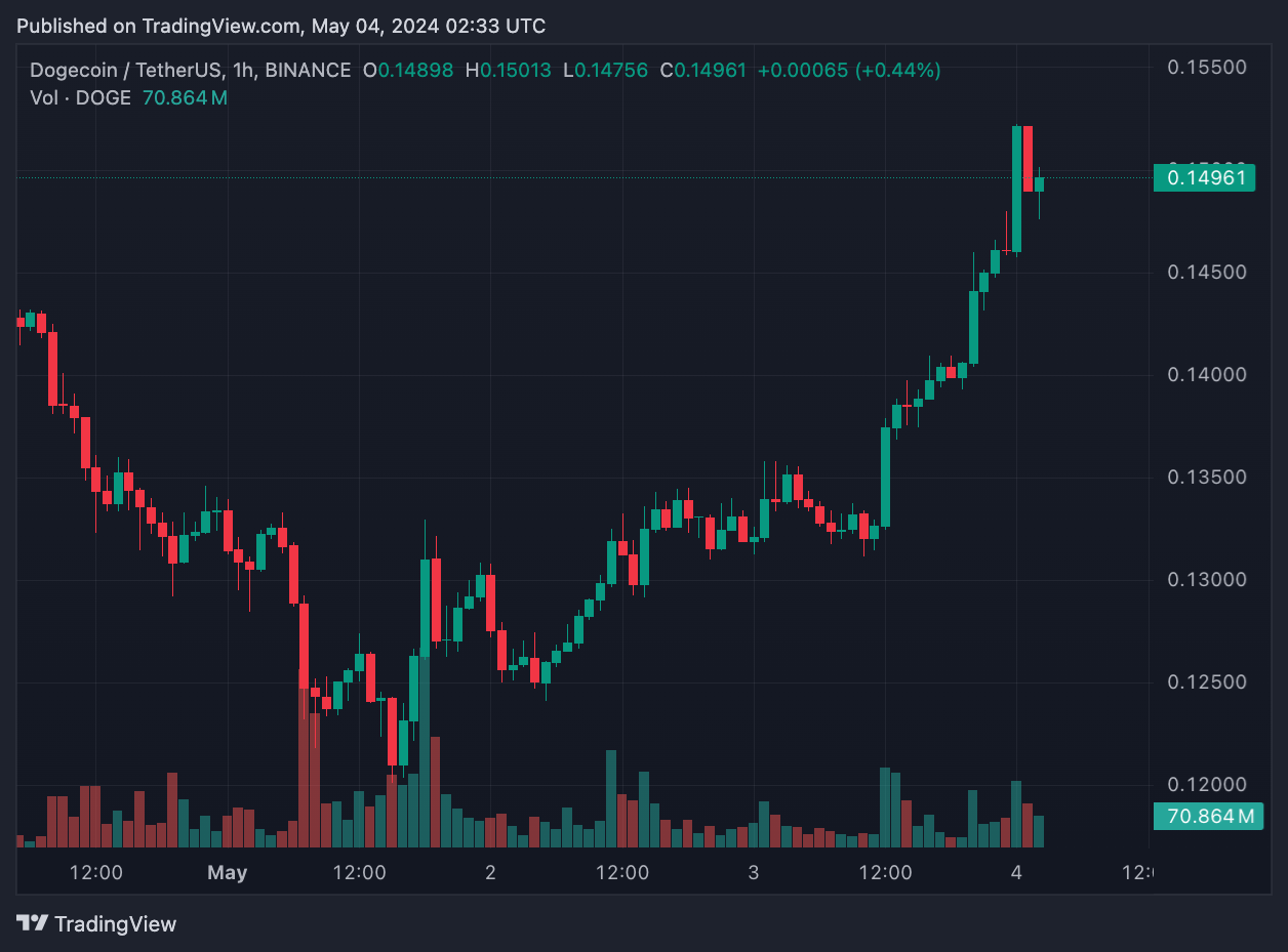 Việc Dogechain rời khỏi cuộc chơi chưa tác động tiêu cực đến giá DOGE khi nó vẫn đang tăng hơn 11% trong 24 giờ qua lên 0,14 USD vào thời điểm viết bài với khối lượng giao dịch 1,4 tỷ USD.