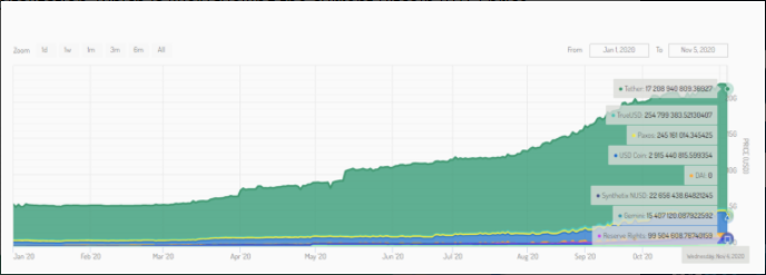Vốn hóa thị trường của Tether đã tăng theo cấp số nhân vào năm 2020. Tính đến giữa tháng 9, vốn hóa thị trường của Tether đã tăng gần 4 lần kể từ đầu năm, tăng trên 15 tỷ đô la từ khoảng 4 tỷ đô la.