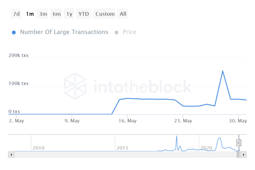 Vào ngày 28/5, số lượng giao dịch lớn liên quan đến BCH đạt mức cao nhất là 154.840 tại mức giá 176,61 đô la.