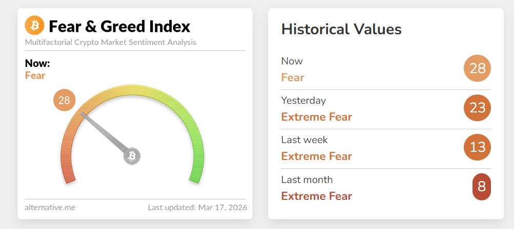 Diễn biến tâm lý chung tiếp tục tích cực hơn dù xung đột chưa hạ nhiệt, khi chỉ số Tham làm & Sợ hãi tăng lên 28 trong ngày thứ Ba, so với 23 của phiên trước và 8 của tuần trước. Tuy nhiên, chỉ số này vẫn nằm trong vùng “sợ hãi cực độ”, cho thấy dư địa phục hồi của XRP có thể còn bị kìm hãm nếu niềm tin thị trường không sớm được củng cố.