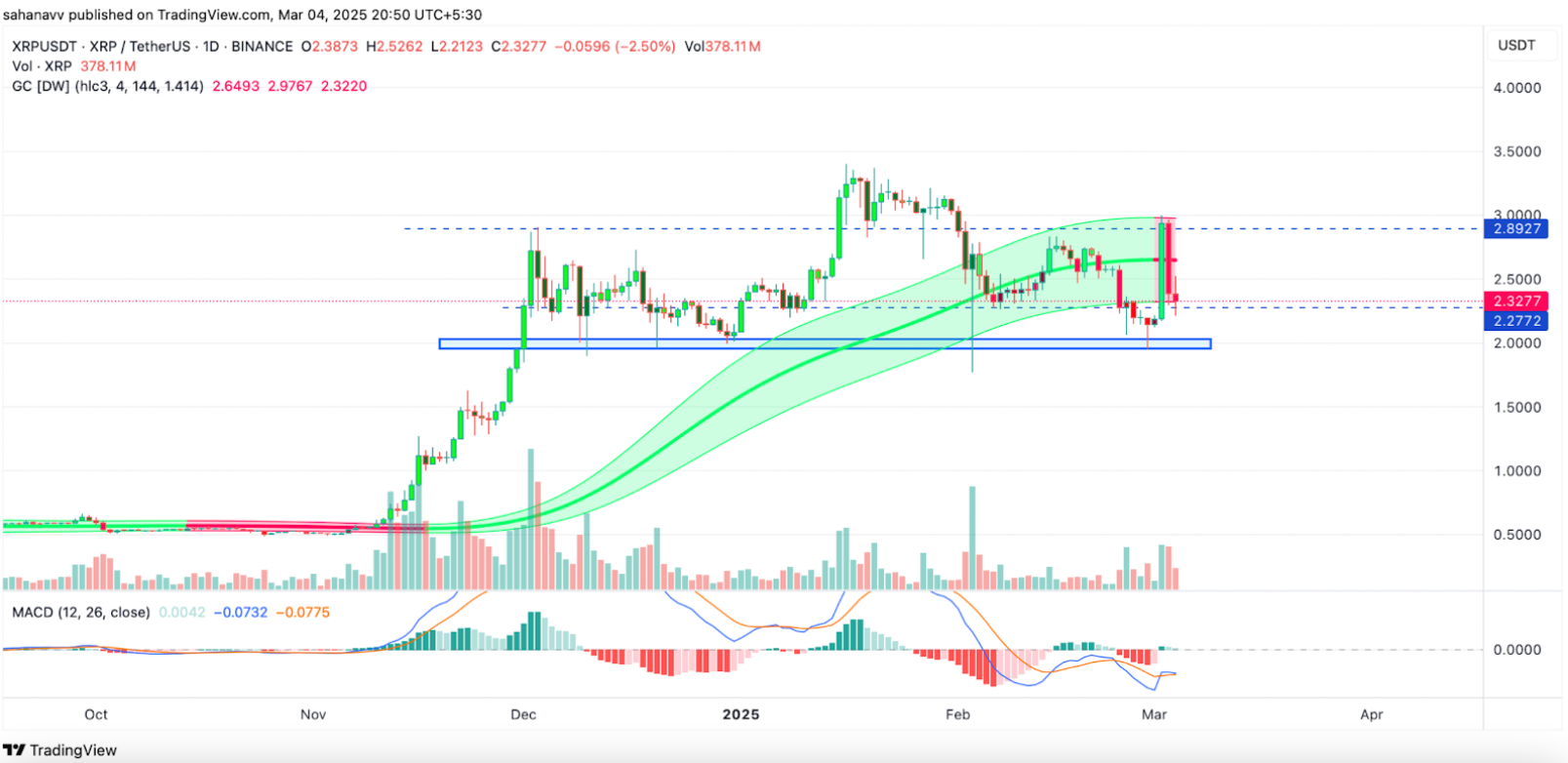 Việc XRP được đưa vào quỹ dự trữ chiến lược tiền điện tử được đánh giá là một bước tiến quan trọng, góp phần củng cố vị thế của nền tảng này. Động thái này đã châm ngòi cho một đợt tăng giá mạnh, đưa XRP vượt qua hai vùng kháng cự quan trọng tại $2,27 và $2,89. Tuy nhiên, áp lực từ phe gấu quanh mức $3 đã dẫn đến sự từ chối giá, trong khi thông tin về việc xác nhận thuế quan đối với Canada và Mexico càng làm trầm trọng thêm đà giảm, khiến giá lao dốc hơn 20%.