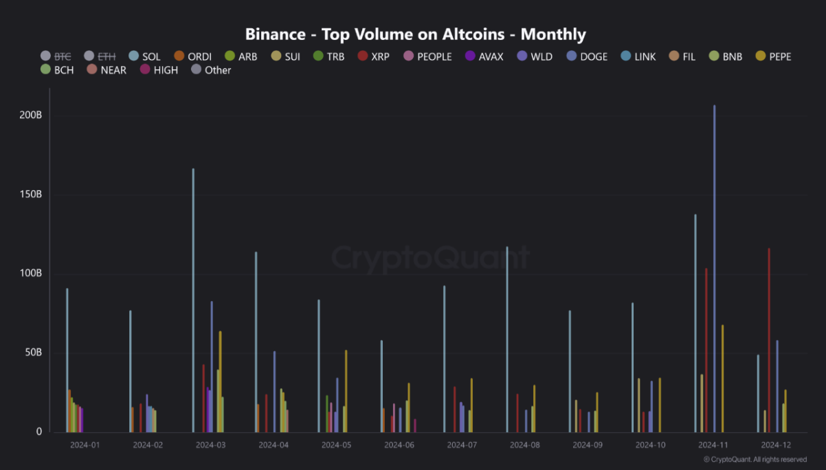 Theo dữ liệu từ nhà phân tích JA Maartunn của CryptoQuant, XRP hiện là altcoin được giao dịch sôi động nhất trên sàn Binance trong tháng 12 này. Đồng tiền điện tử này đã ghi nhận khối lượng giao dịch vượt mức 116,6 triệu USD trên thị trường Binance Futures.