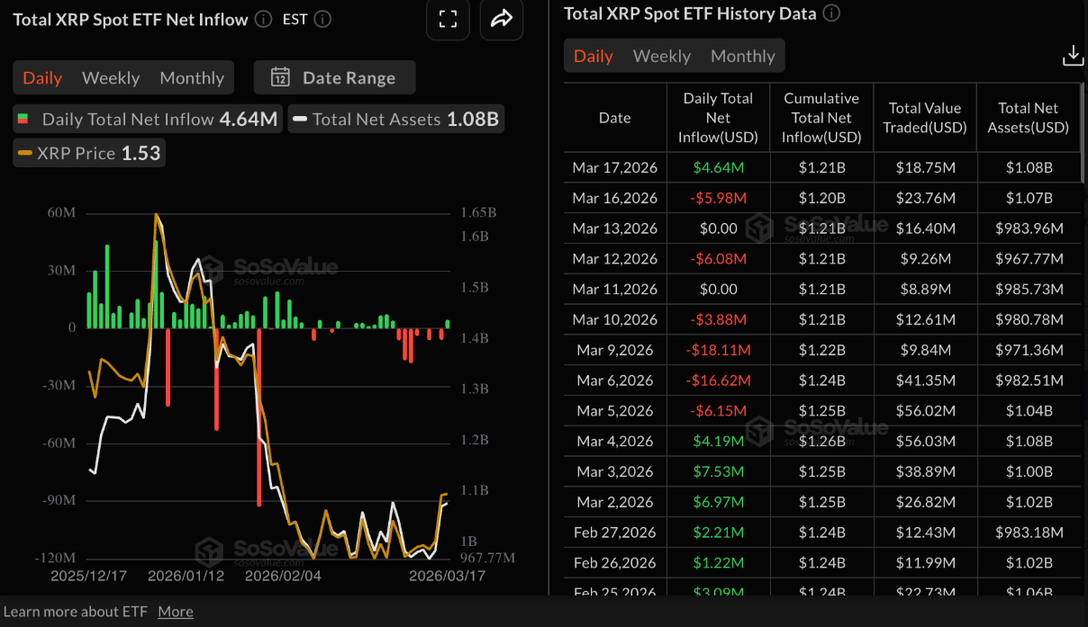 Dòng vốn ETF XRP | Nguồn: SoSoValue