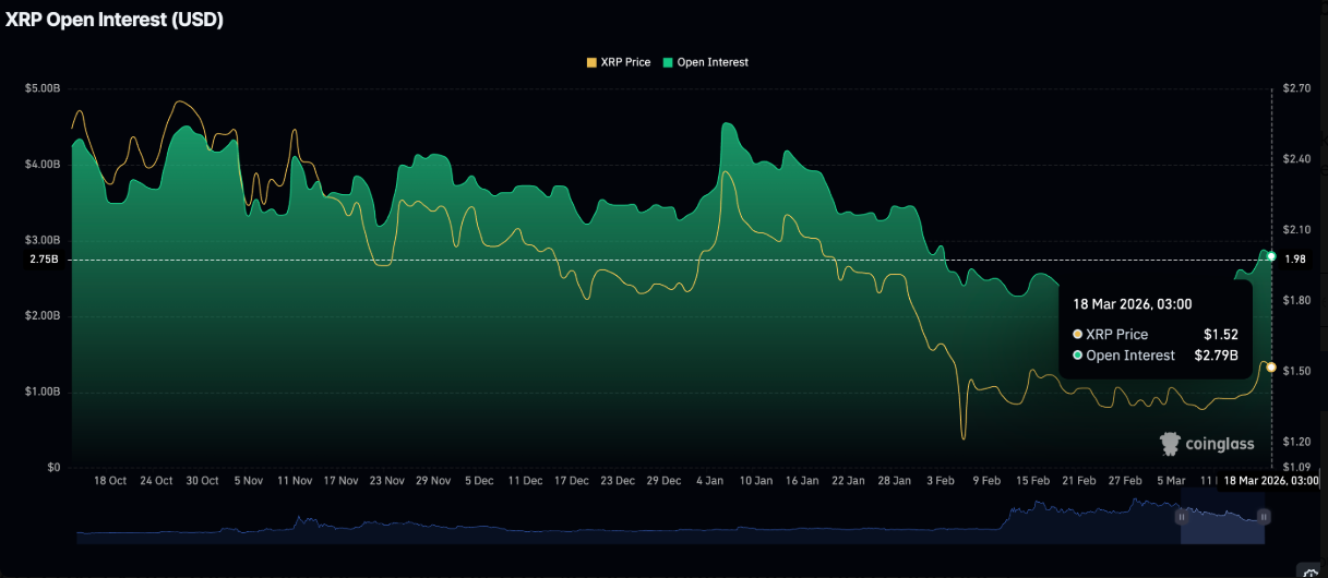Ở chiều ngược lại, thị trường phái sinh đang có dấu hiệu hạ nhiệt khi hợp đồng mở (OI) hợp đồng tương lai giảm xuống còn 2,79 tỷ USD trong ngày thứ Năm, so với 2,87 tỷ USD của ngày trước đó. Trước đó, OI đã tăng đều từ vùng đáy 2,11 tỷ USD thiết lập ngày 4/3, phản ánh mức độ quan tâm gia tăng từ nhà đầu tư cá nhân khi giá XRP phục hồi từ vùng thấp 1,34 USD trong tháng.