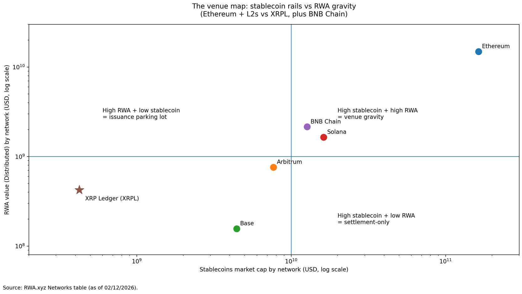 Hiện tại, tín hiệu còn trái chiều: XRPL có lợi thế về phân bổ nguồn cung và động lực stablecoin, nhưng mức độ sử dụng thực tế vẫn nghiêng mạnh về Ethereum. Giai đoạn 90 ngày tới sẽ quyết định XRPL trở thành venue thực thụ hay chỉ là điểm phát hành trong khi dòng thanh toán và tài sản thế chấp vẫn vận hành ở nơi khác.