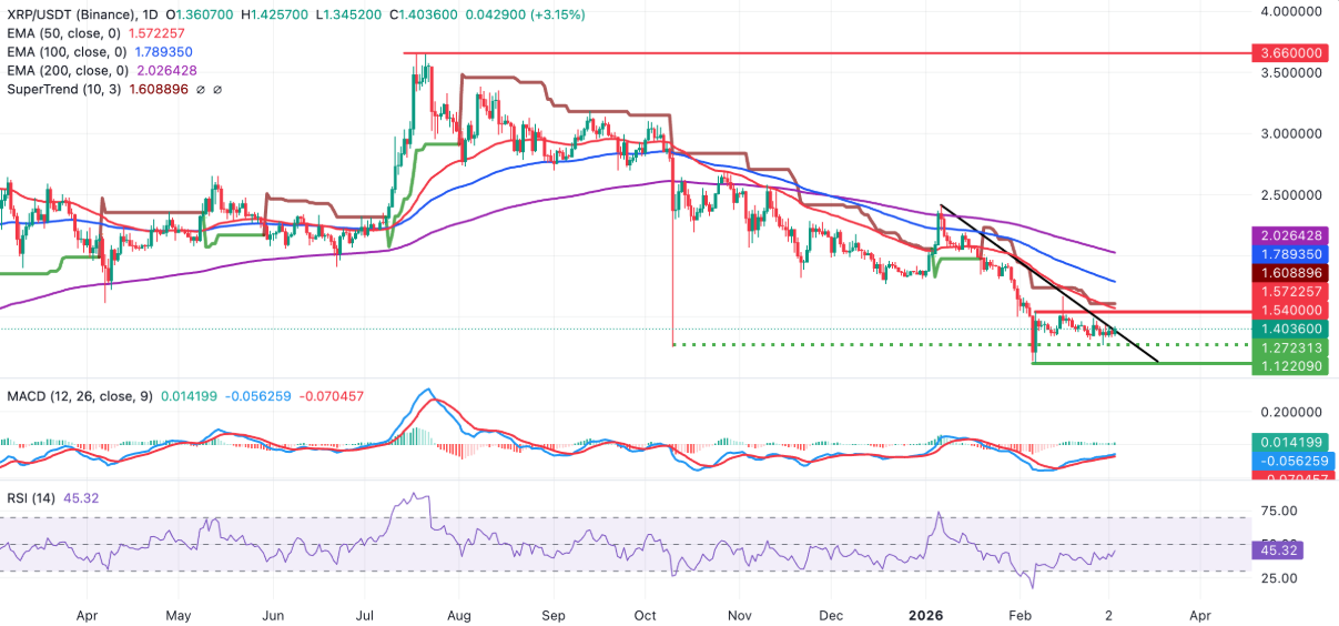 Ripple (XRP) đang cho thấy đà tăng mạnh khi duy trì giao dịch trên mốc 1,40 USD tại thời điểm ghi nhận vào ngày thứ Năm. Tiền điện tử chuyên phục vụ lĩnh vực thanh toán xuyên biên giới này đang tăng tốc cùng làn sóng phục hồi của thị trường crypto, khi Bitcoin (BTC) bứt phá qua ngưỡng tâm lý quan trọng 70.000 USD, còn Ethereum (ETH) tiếp tục giữ vững vị thế trên mốc 2.000 USD.