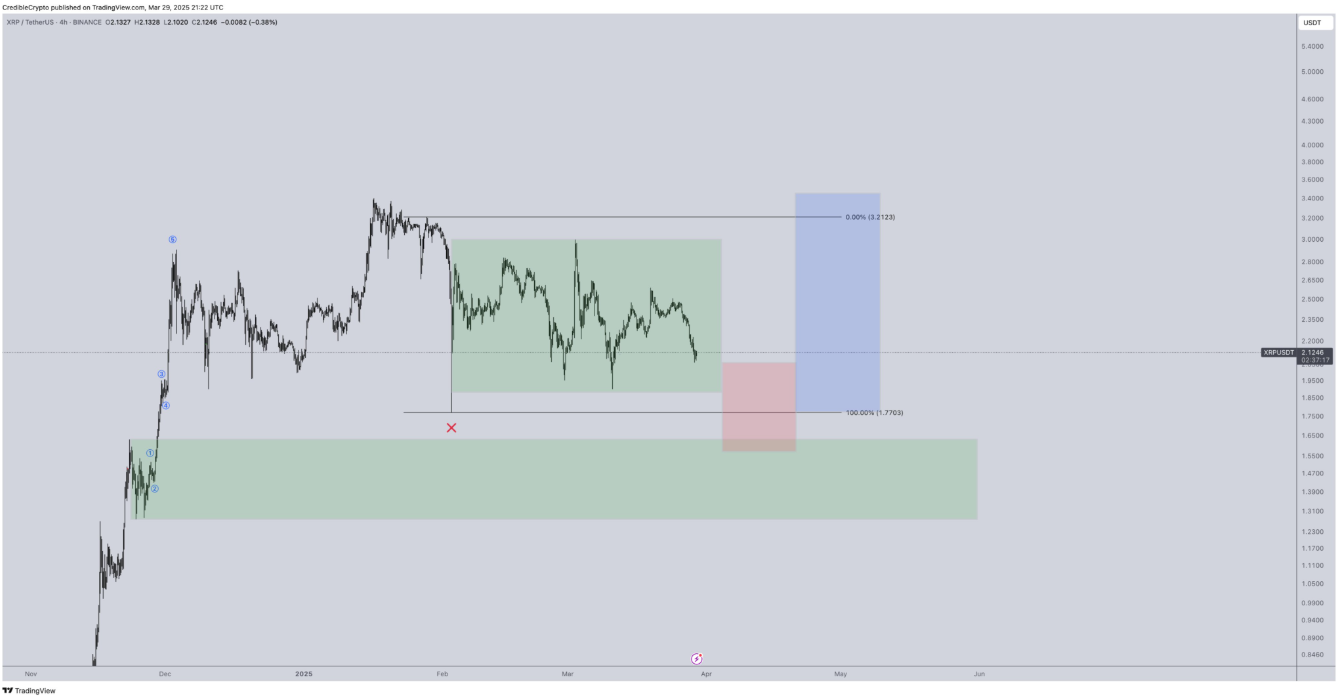 Nhà phân tích CrediBULL Crypto cho biết đợt phục hồi gần đây của XRP đã không thể vượt qua mức $2,20, củng cố lợi thế cho phe gấu. Ông dự đoán giá có thể quay lại mức đáy của phạm vi quanh $1,77 để tìm kiếm cơ hội mua vào.