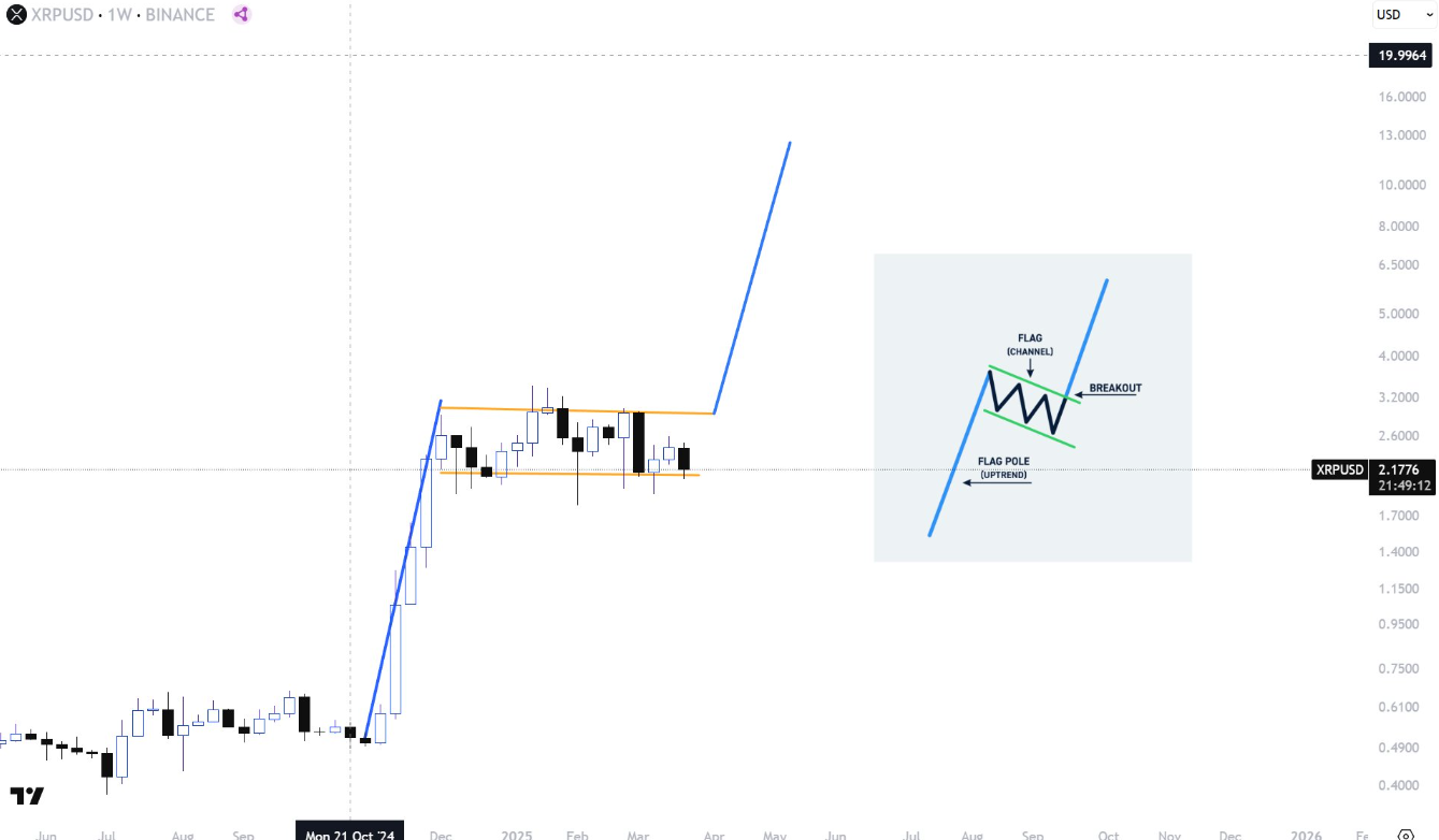CrediBULL nhận định rằng phạm vi dao động của XRP từ $1,77 đến $3,21 có thể đóng vai trò là vùng tích lũy, chờ đợi một cú bứt phá rõ ràng để xác nhận xu hướng tiếp theo. Đáng chú ý, nhà phân tích Stellar Babe cho rằng phạm vi này có thể đang hình thành mô hình “cờ tăng” (bull flag) – một tín hiệu tiềm năng cho đà tăng trưởng mạnh mẽ.