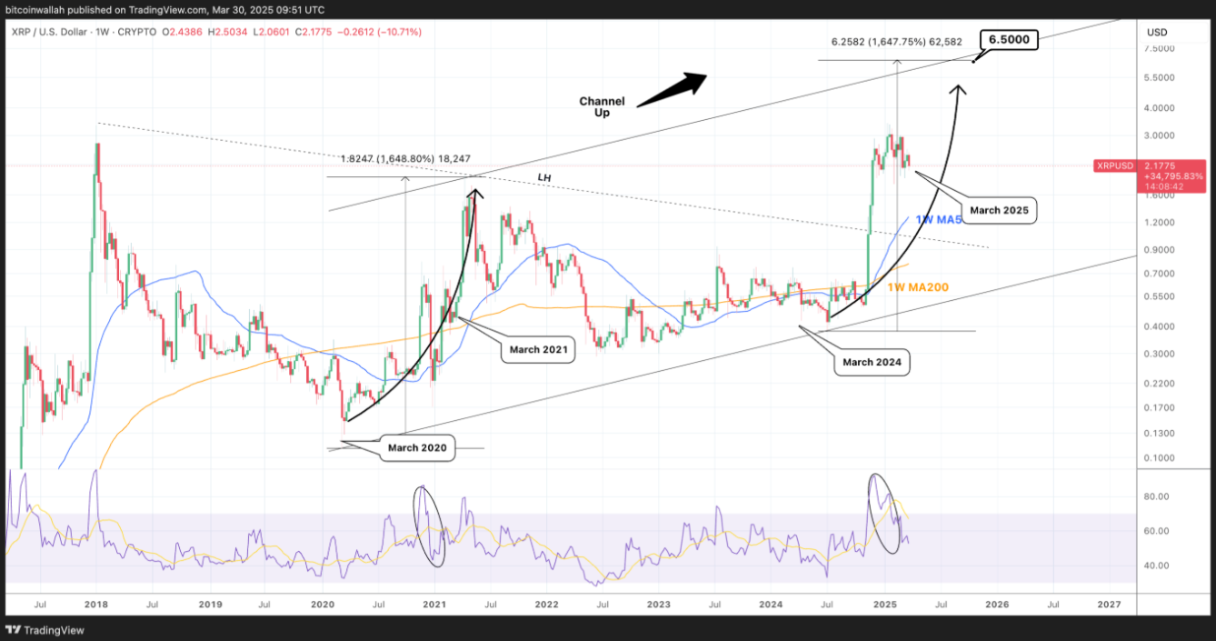 Kênh tăng giá 5 năm cho thấy XRP có thể đạt $6,50