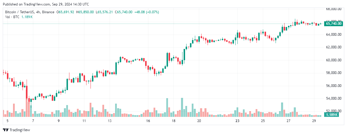 Dữ liệu từ TradingView cho thấy XRP đã tăng 26% từ mức thấp 0,5 đô la vào ngày 6/9 lên mức cao trong ngày là 0,63 đô la vào ngày 29/9.