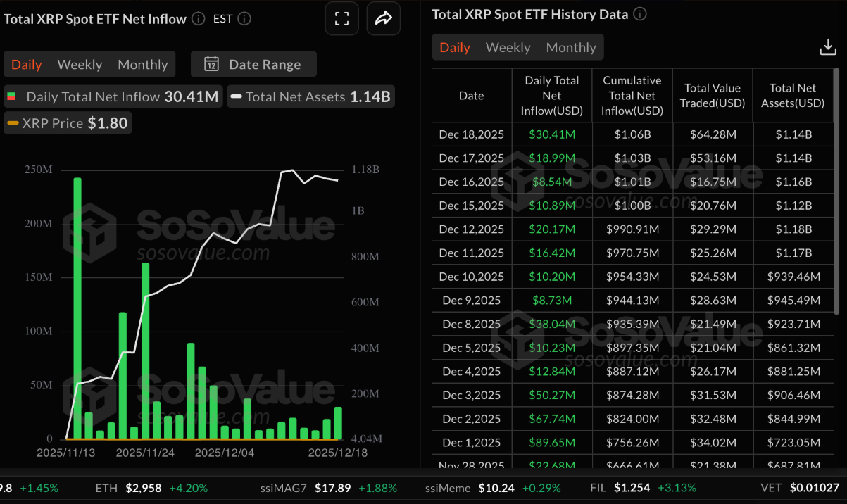 Dòng tiền vào ETF XRP tiếp tục được duy trì