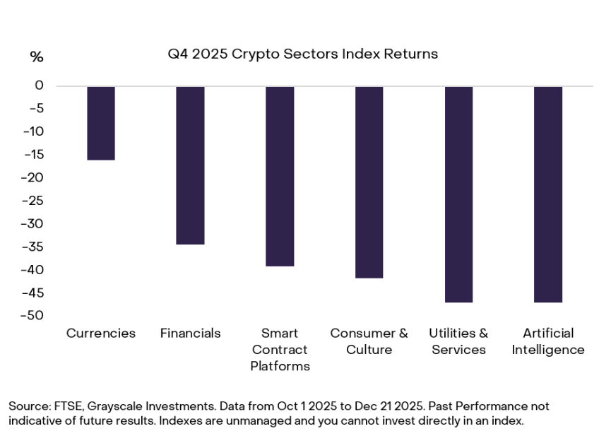 Sự tăng trưởng của các loại tiền điện tử tập trung vào quyền riêng tư đã giúp phân ngành Tiền tệ vượt trội hơn các phân khúc khác trong quý IV | Nguồn: Grayscale