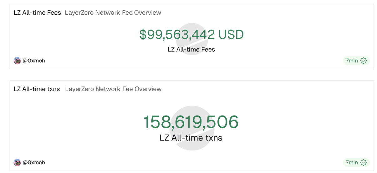 LayerZero vẫn giữ được lực cầu bền bỉ với vai trò là giao thức tương tác blockchain chủ chốt, trong bối cảnh thị trường tiền điện tử nói chung đang chứng kiến dòng vốn rút khỏi nhiều giao thức lớn để quay trở lại các sàn giao dịch. Theo dữ liệu từ bảng điều khiển Dune, tổng phí tích lũy của LayerZero đã chạm mốc 99,56 triệu USD, tiến rất gần ngưỡng 100 triệu USD tính đến thứ Sáu.