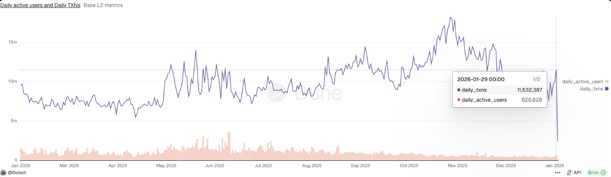 Song song đó, số lượng giao dịch hằng ngày đạt 11,53 triệu vào thứ Năm, phục hồi rõ rệt so với mức 7,68 triệu của tuần trước. Lượng người dùng hoạt động hằng ngày tiếp tục duy trì trên 500.000 và tăng vọt lên 626.628, cho thấy mức độ gắn kết ổn định của cộng đồng. Diễn biến này phản ánh sức mạnh nội tại và đà mở rộng ngày càng rõ nét của mạng lưới LayerZero trong suốt tháng qua.