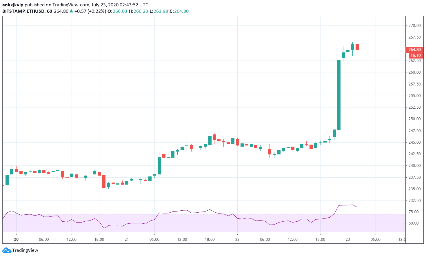 Tại thời điểm viết bài, Ethereum đang giao dịch tăng gần 9% với mức giá $ 264.